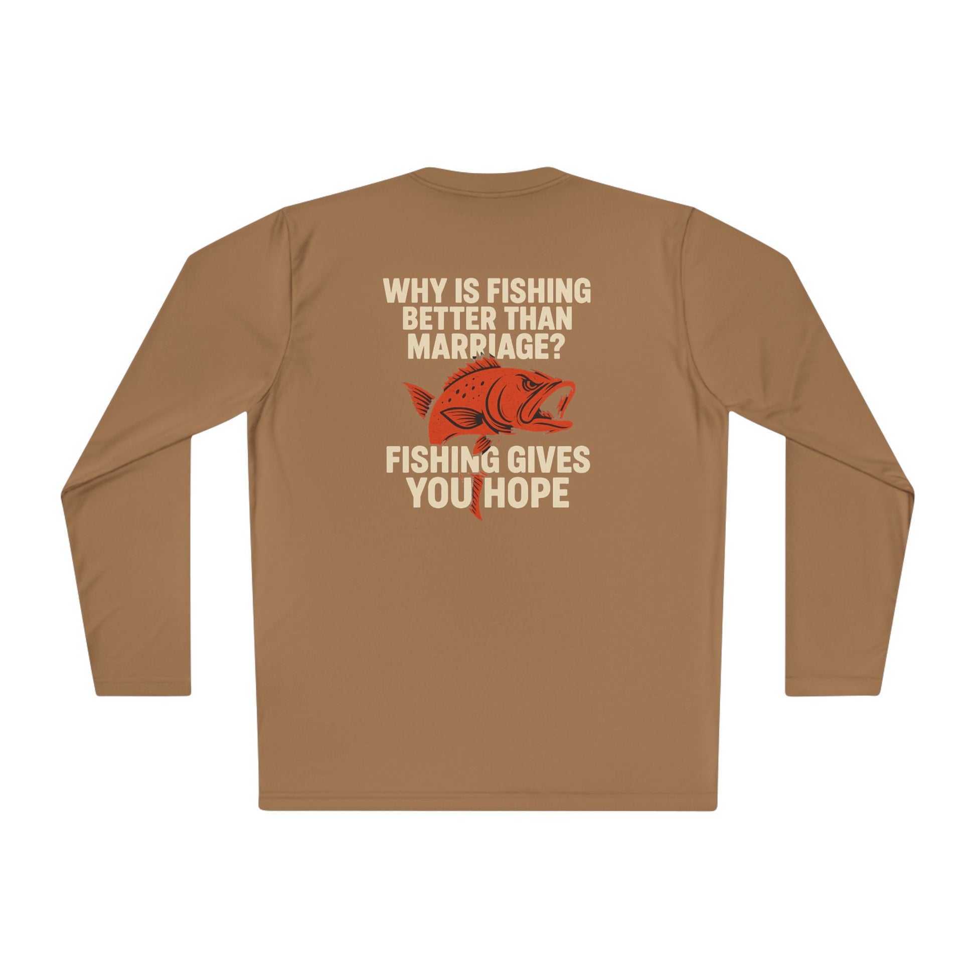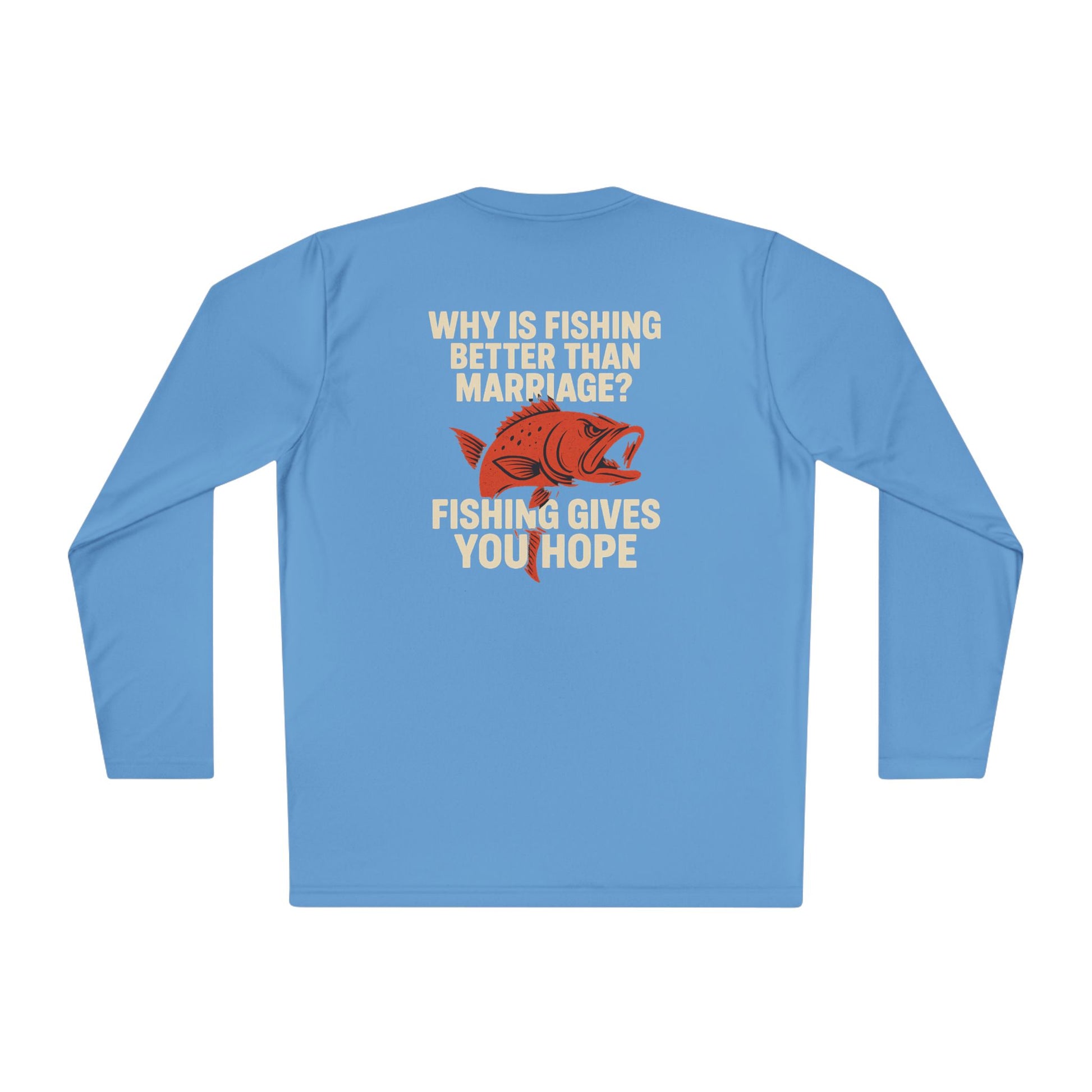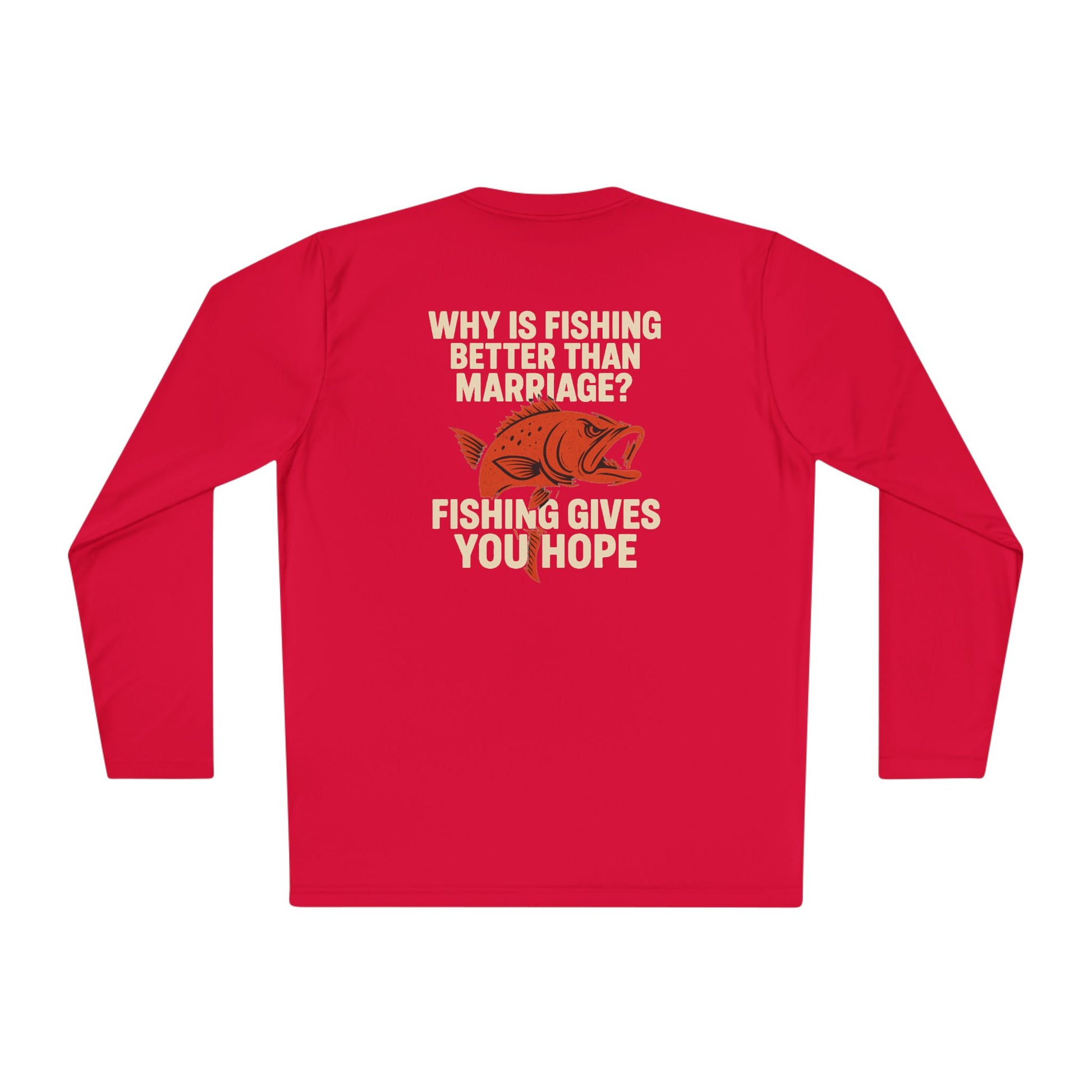 Introducing the perfect choice for fishing enthusiasts and humor lovers alike – this Unisex Lightweight Long Sleeve Tee is designed to keep you comfortable and stylish. Made from high-quality, moisture-wicking polyester, it’s ideal for those sunny days spent outdoors, whether you’re casting a line on a lake or just enjoying a casual outing. The light fabric ensures breathability, making it suitable for active adventures or relaxed gatherings with friends. This tee is perfect for gifting on occasions like Father's Day, birthdays, or just as a fun surprise for someone who loves fishing!
