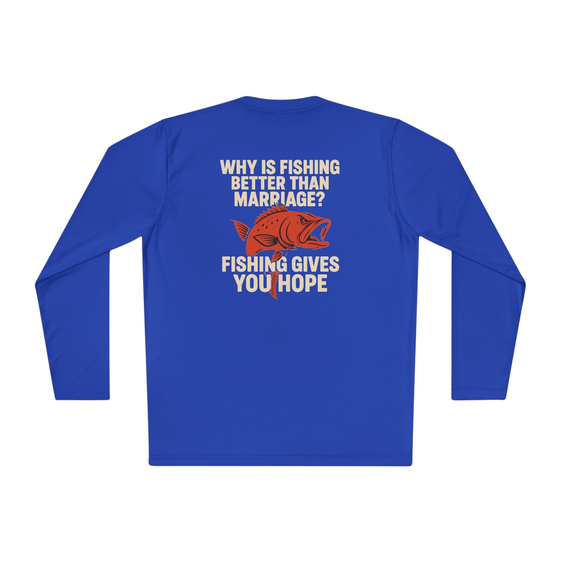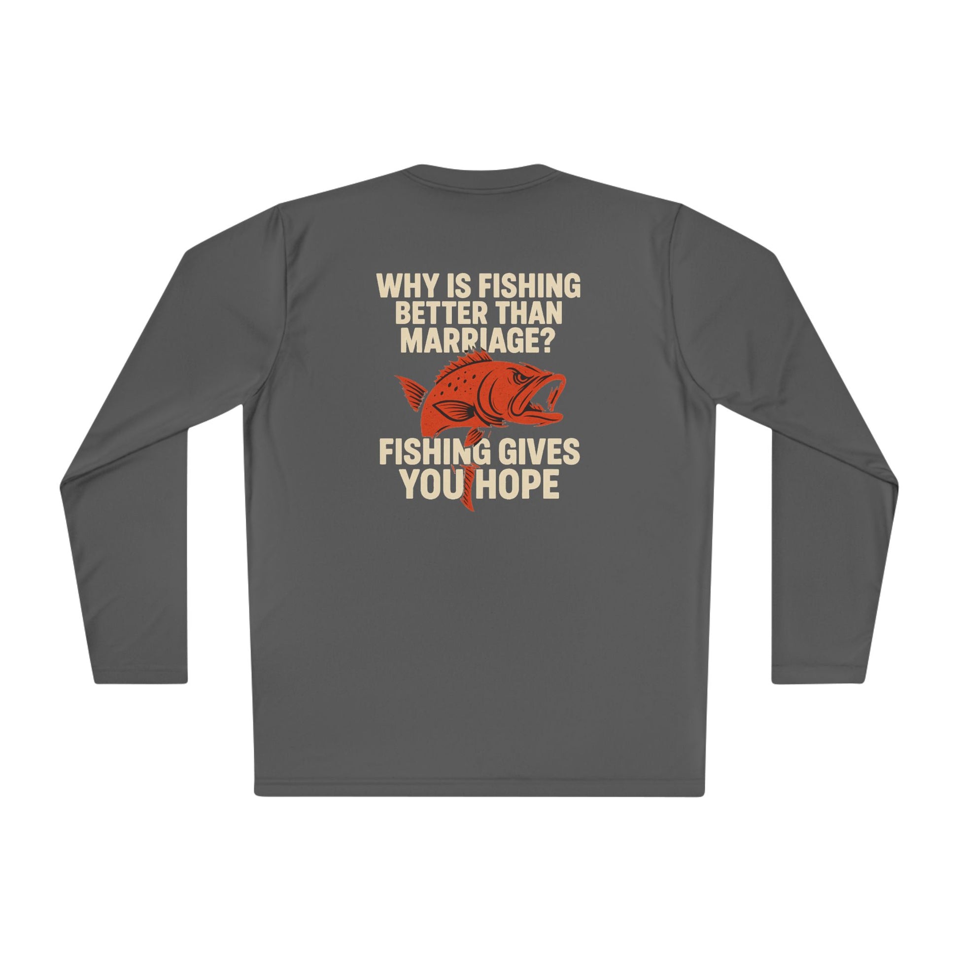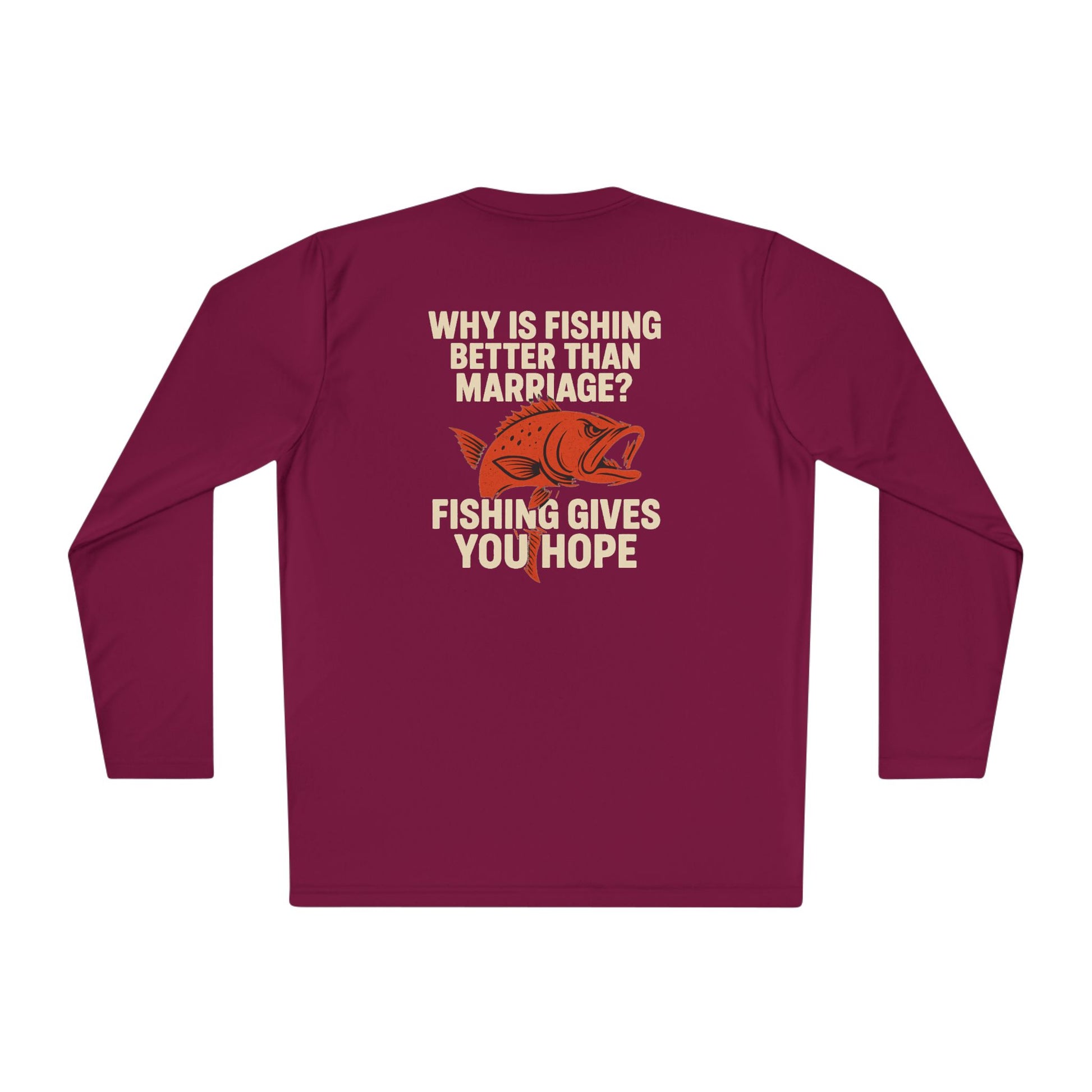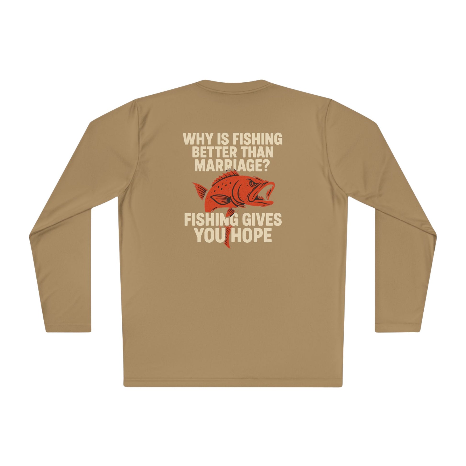 Introducing the perfect choice for fishing enthusiasts and humor lovers alike – this Unisex Lightweight Long Sleeve Tee is designed to keep you comfortable and stylish. Made from high-quality, moisture-wicking polyester, it’s ideal for those sunny days spent outdoors, whether you’re casting a line on a lake or just enjoying a casual outing. The light fabric ensures breathability, making it suitable for active adventures or relaxed gatherings with friends. This tee is perfect for gifting on occasions like Father's Day, birthdays, or just as a fun surprise for someone who loves fishing!